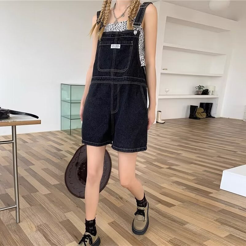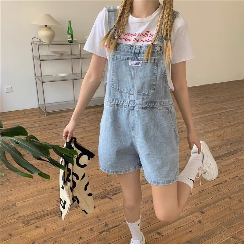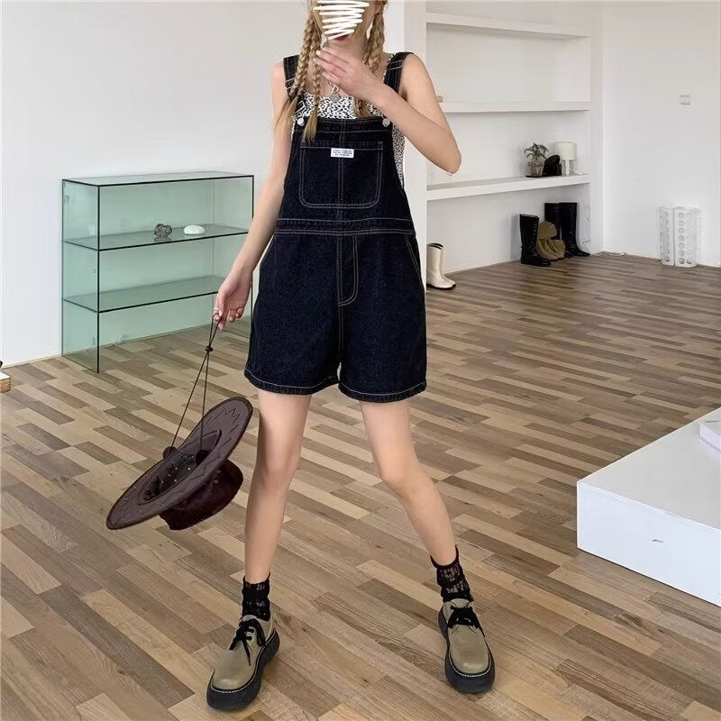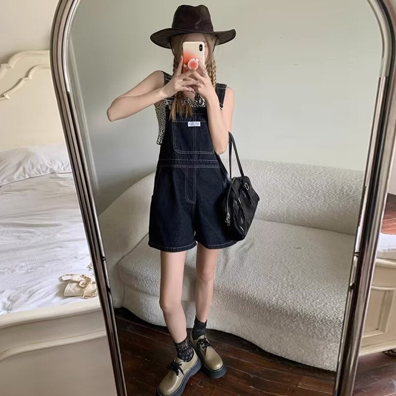 Anti-Aging Elegant Design Sense Denim Suspender Shorts Women's Summer