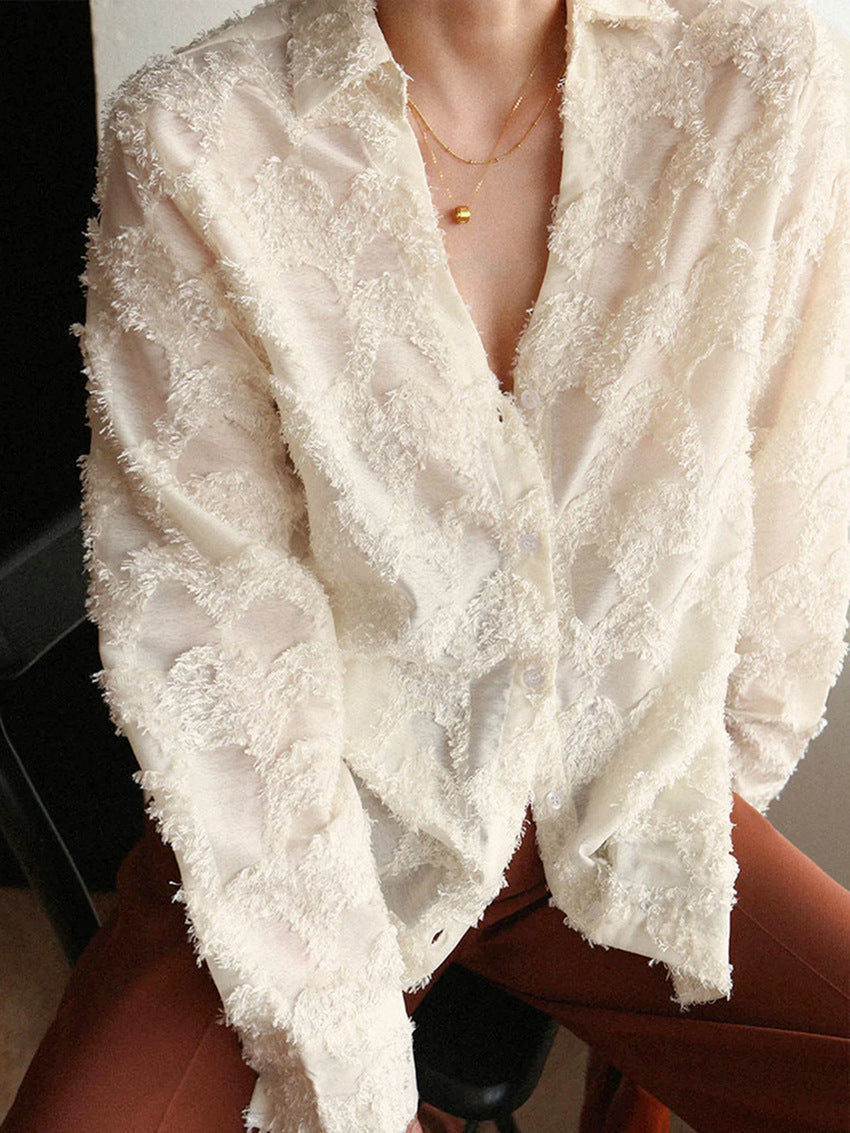 Fashion Special-interest Sense Of Design Shirt Jacquard Simple Temperament Long Sleeve All-matching