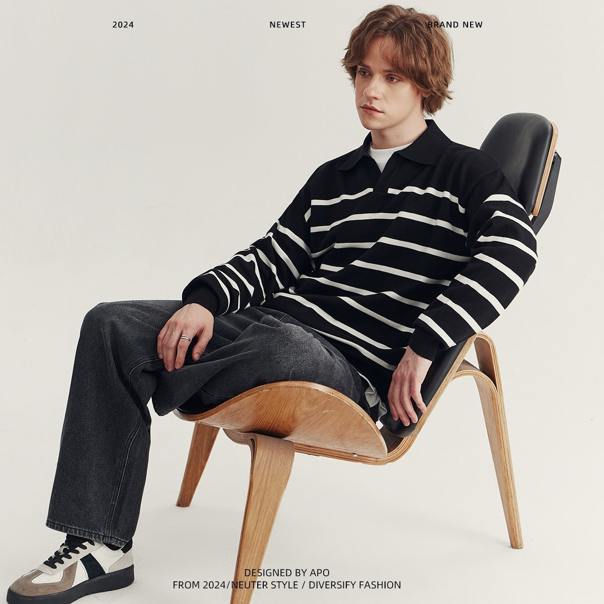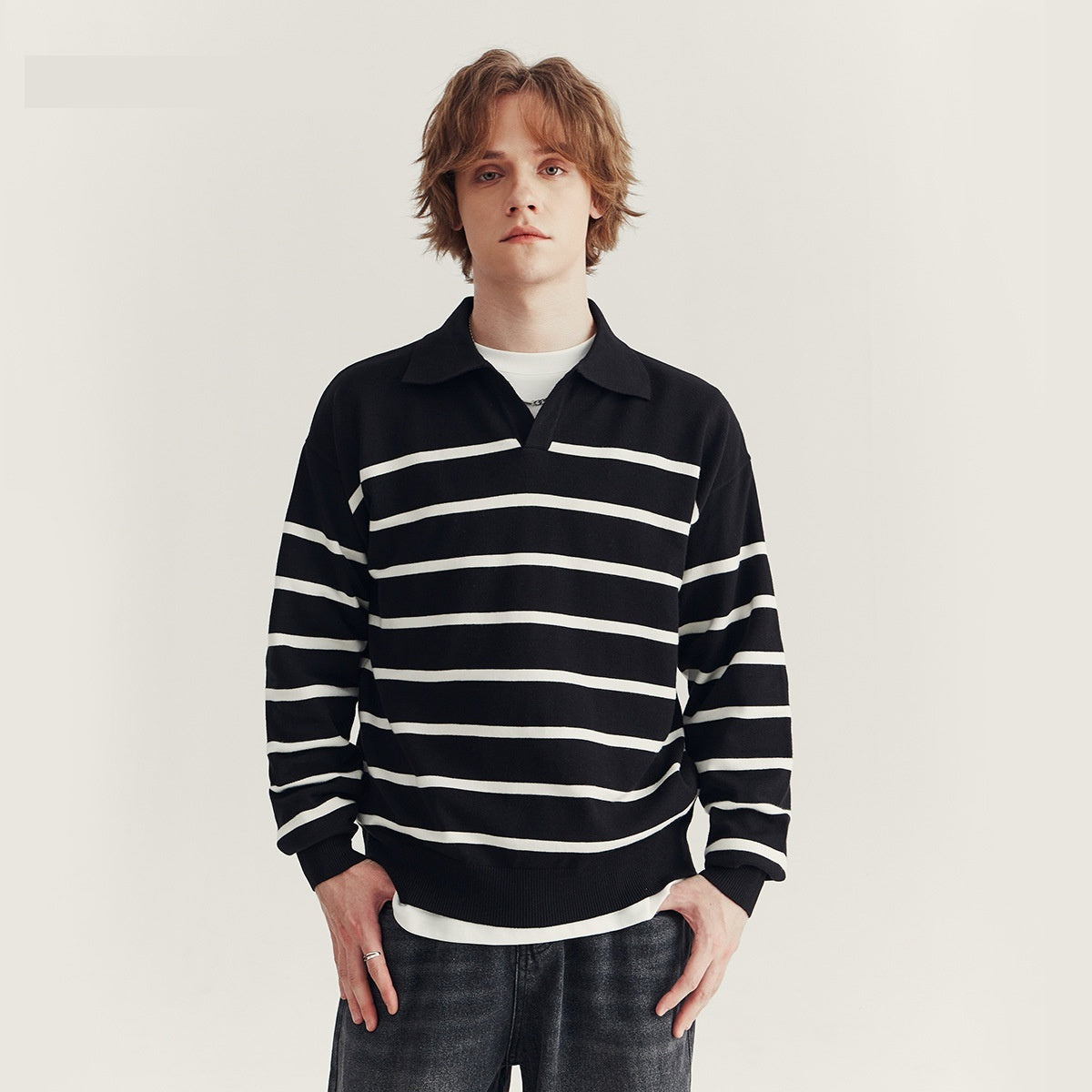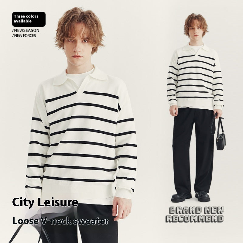 High-grade Loose Contrast Color Striped Sweater Long Sleeve Inner Wear Sweater For Men