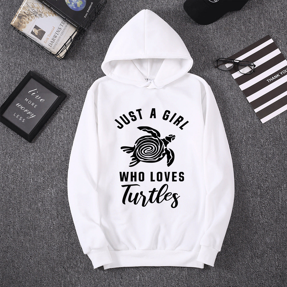 Hooded Sweater Women The Turtle Letter Printed Hoodie Casual Loose Top