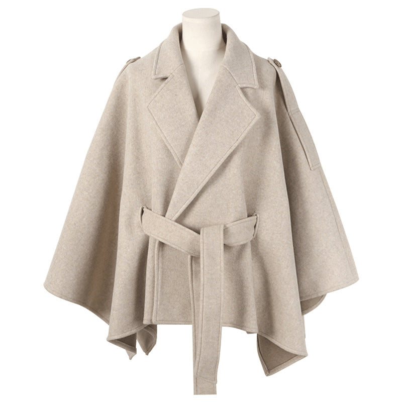 Lace-up Shawl Cape Thickened Coat Woolen