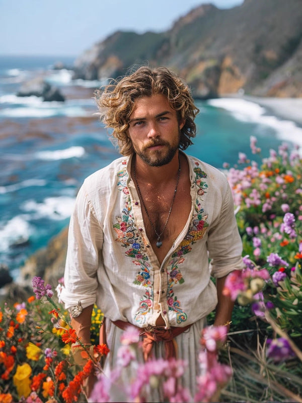 Men's Ethnic Style Retro Casual Collar Embroidered Shirt