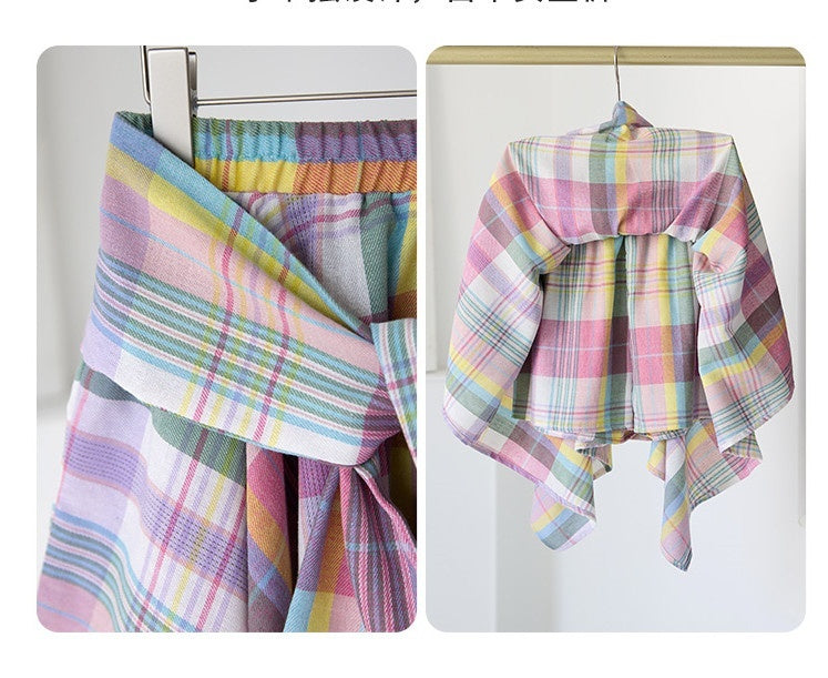 Color classification: Mori style pink plaid irregular lace up culottes (with safety pants), Mori style pink plaid irregular lace up culottes (without safety pants)